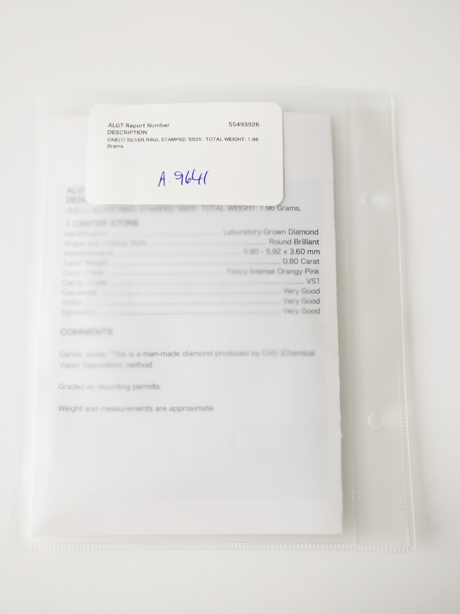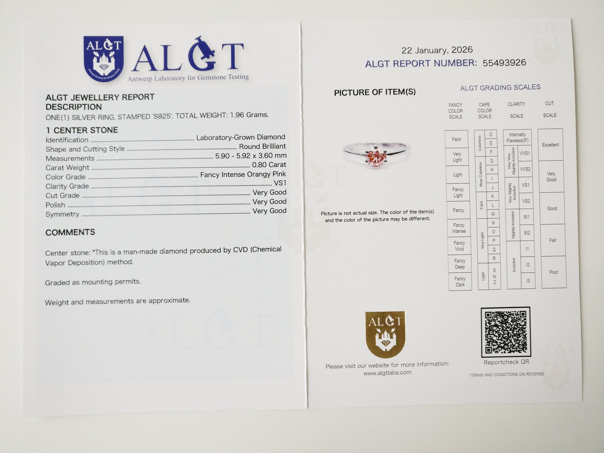 With ALGT Certificate No. 55493926