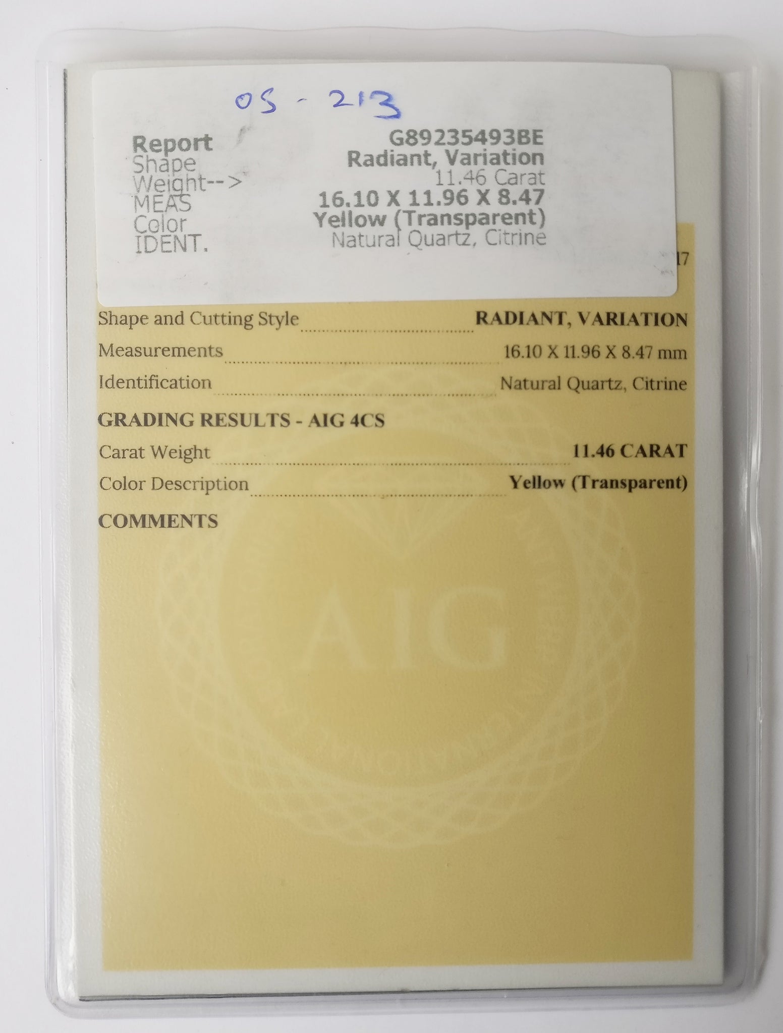 - Certificate: AIG G89235493BE