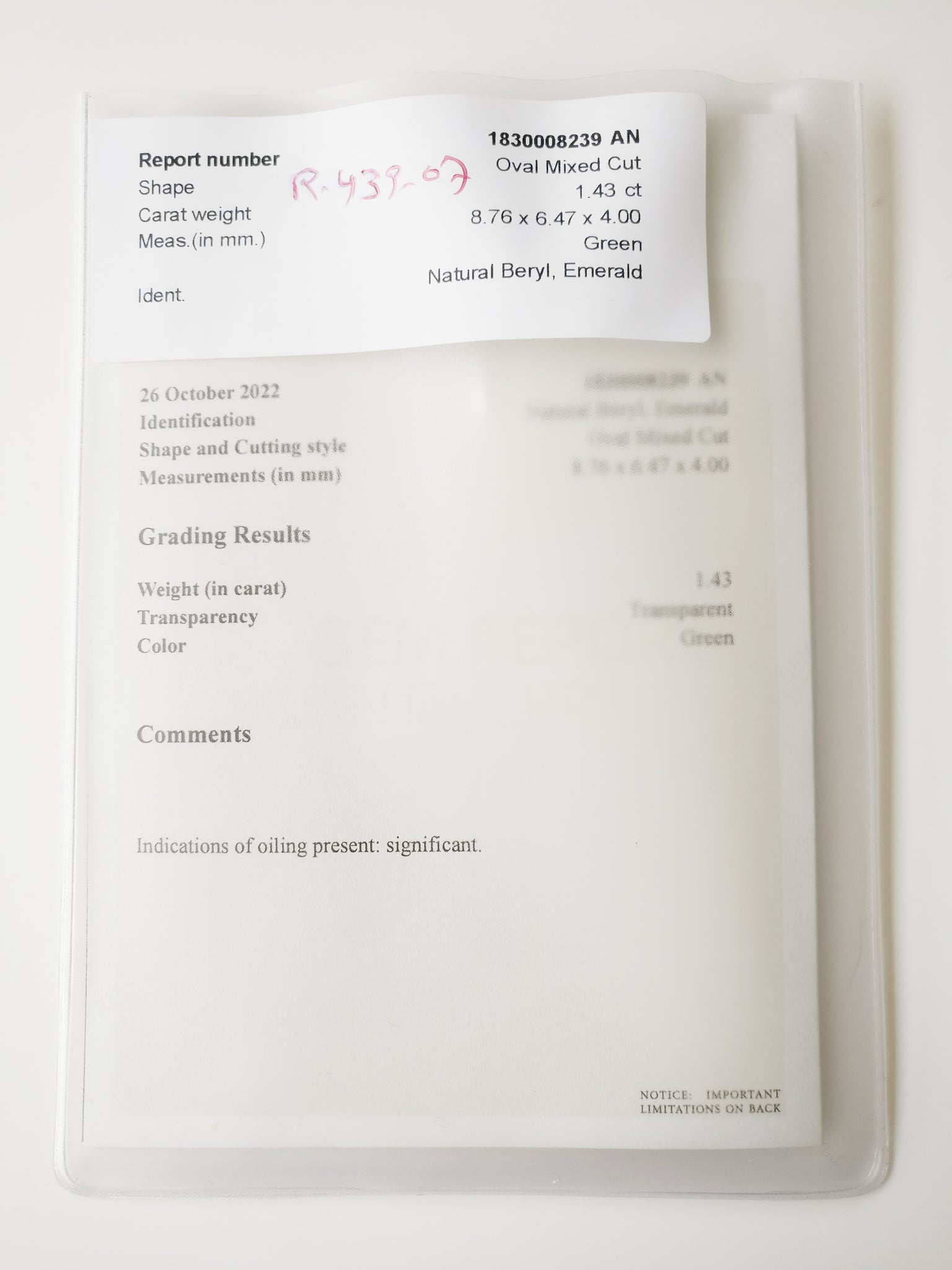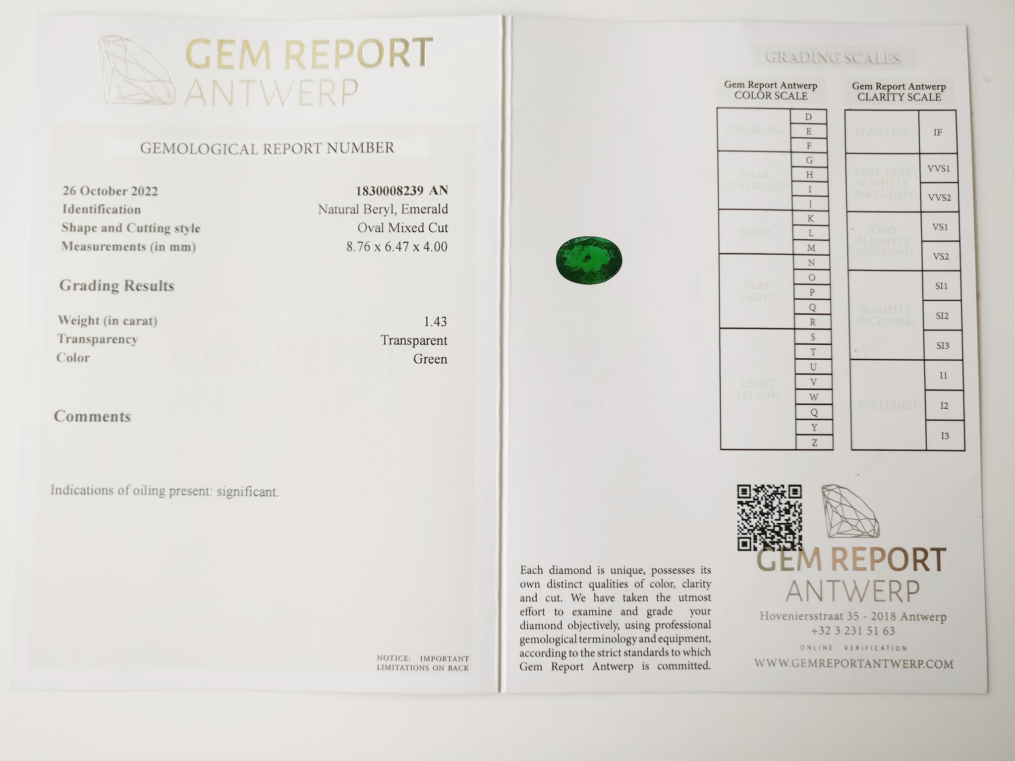 - Certificate: GRA 1830008239AN
