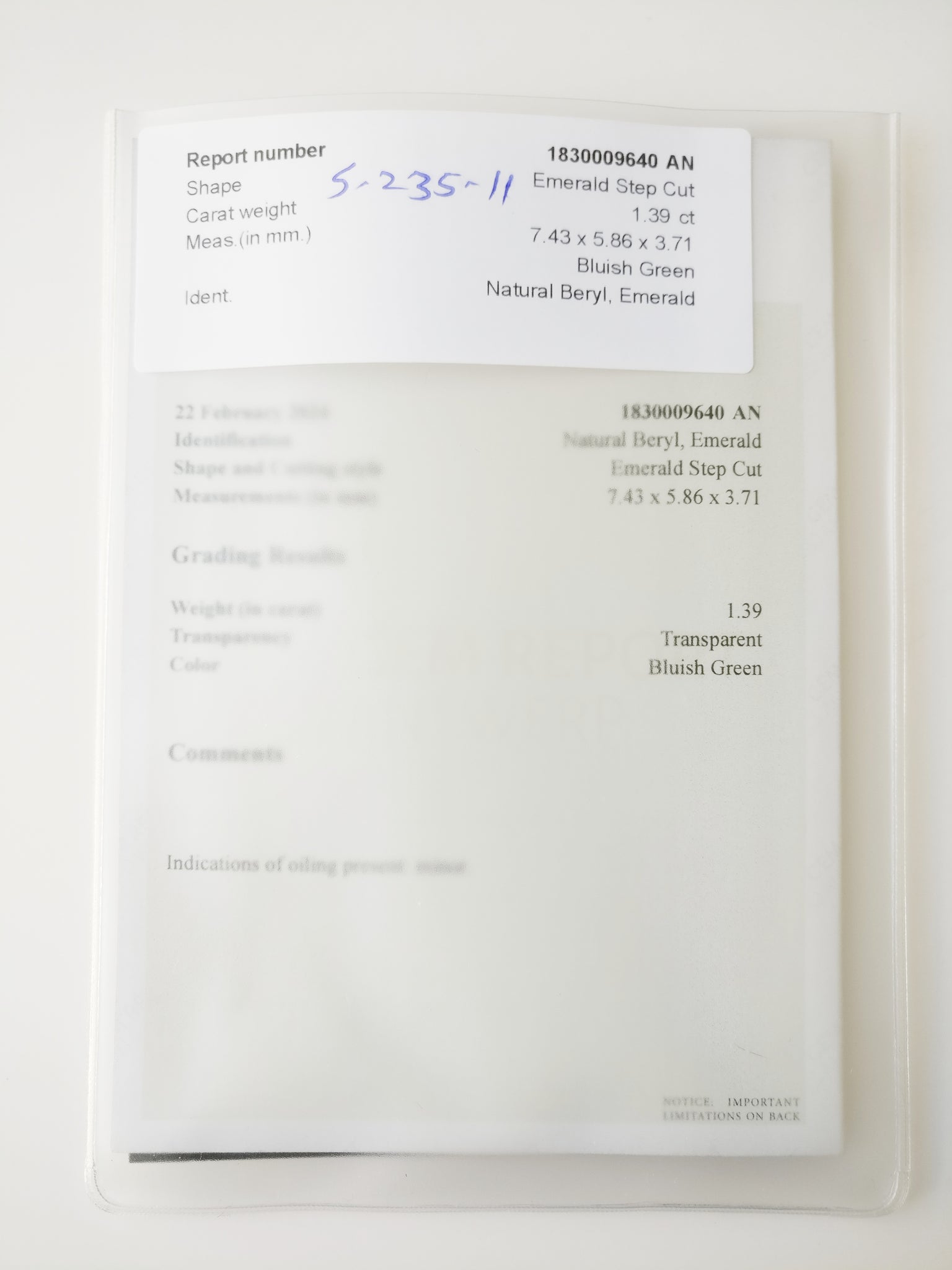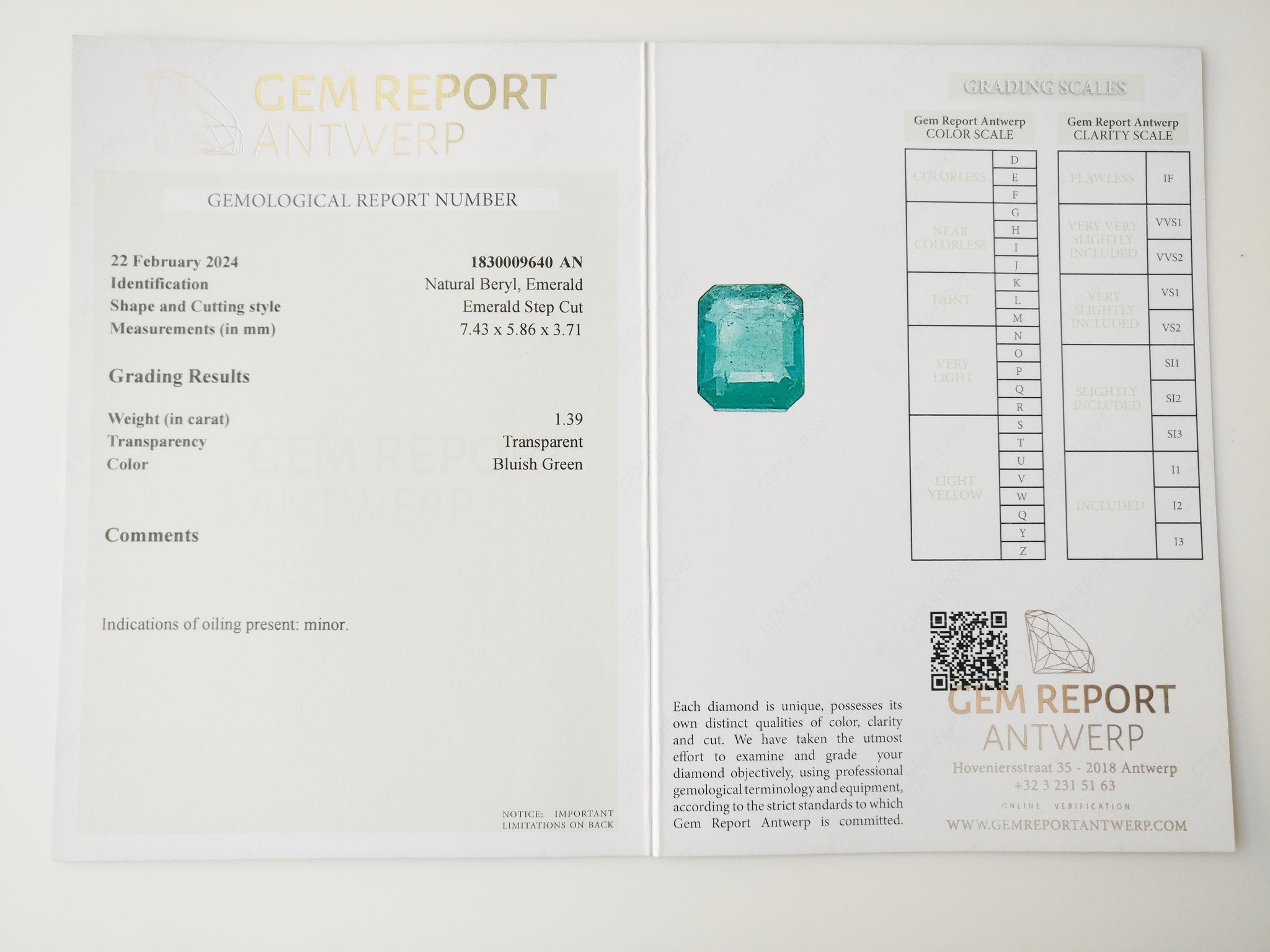 - Certificate: GRA 1830009640AN